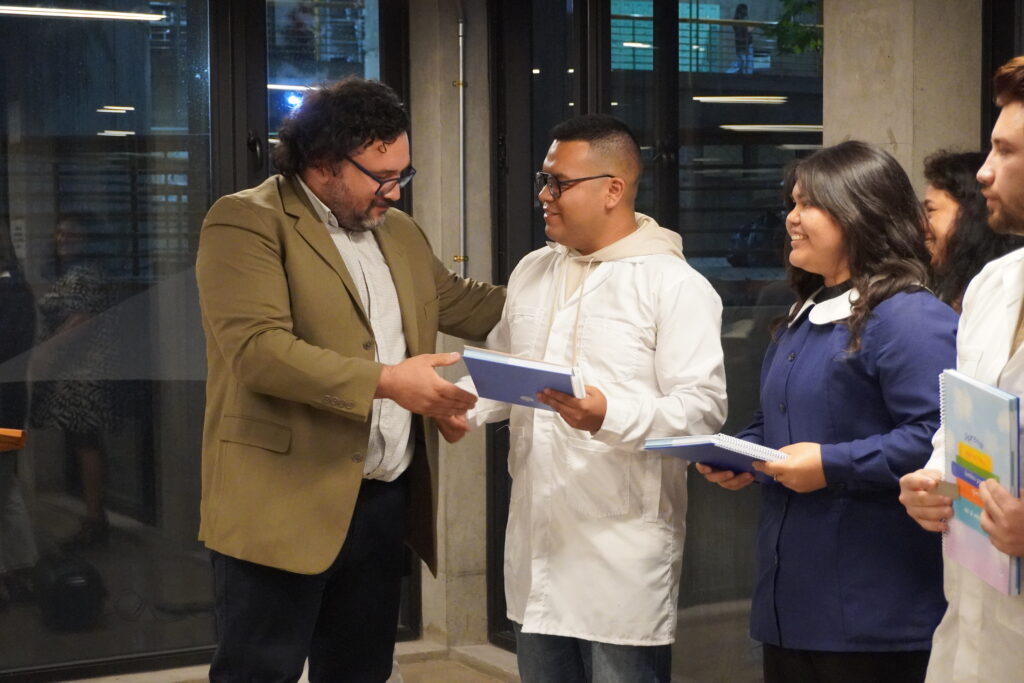 La ceremonia estuvo cargada de simbolismo. Uno de los momentos centrales fue la bendición de las piochas, realizada por el padre Federico Ponzoni, tras lo cual cada estudiante recibió este distintivo que los acompañará en sus centros de práctica. Junto a ello, se les entregó un cuaderno del profesor y una carta que ellos mismos habían escrito tiempo atrás, como una invitación a reconectar con sus motivaciones y proyectarse en este nuevo desafío.